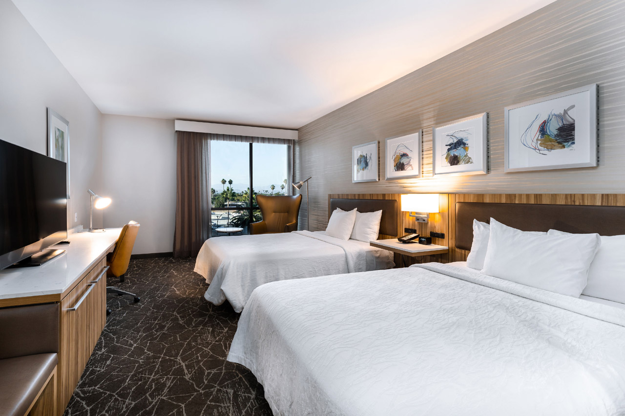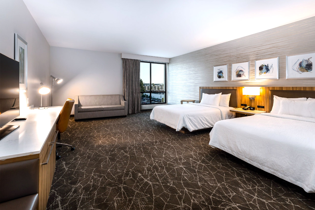 Relax in this spacious and stylish approximately 600 square ft. room. Enjoy a restful night's sleep in the luxurious Suite Dreams® by Serta queen beds, which provide the perfect balance between comfort and support. Work in comfort at the spacious desk with ergonomic chair. Watch a program on the 50-inch LCD TV or surf the web with complimentary WiFi access.